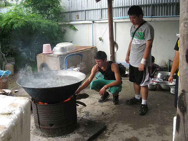 我們就一部份的人去幫忙煮Rice soup,